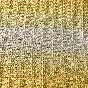 I began with a chain of 120 + 1 + 2 (a bit too small for a baby blanket) so I added a wide border. Easy, fun stitch to highlight striped yarns.