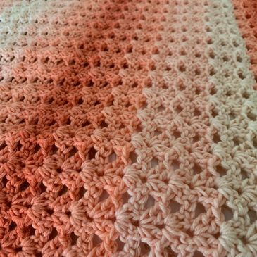 The striped yarn makes it very colorful for a bright baby blanket! I started with a chain of 113, but later found the pattern linked below which also has a beautiful border.