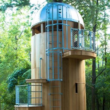 This treetop playhouse located in Orchard Park, New York is sandwiched between a robust Quercus alba (white oak) and a lofty Acer saccharinum (silver maple). Designed specifically for children, the “Copper Tower” encompasses 90 square feet with a rope ladder, a secret entry point and a covered hammock. It’s finest feature is a fifteen foot high look-out tower that has a 360 degree view of the entire neighborhood. A great spot to utilize a telescope or some binoculars!